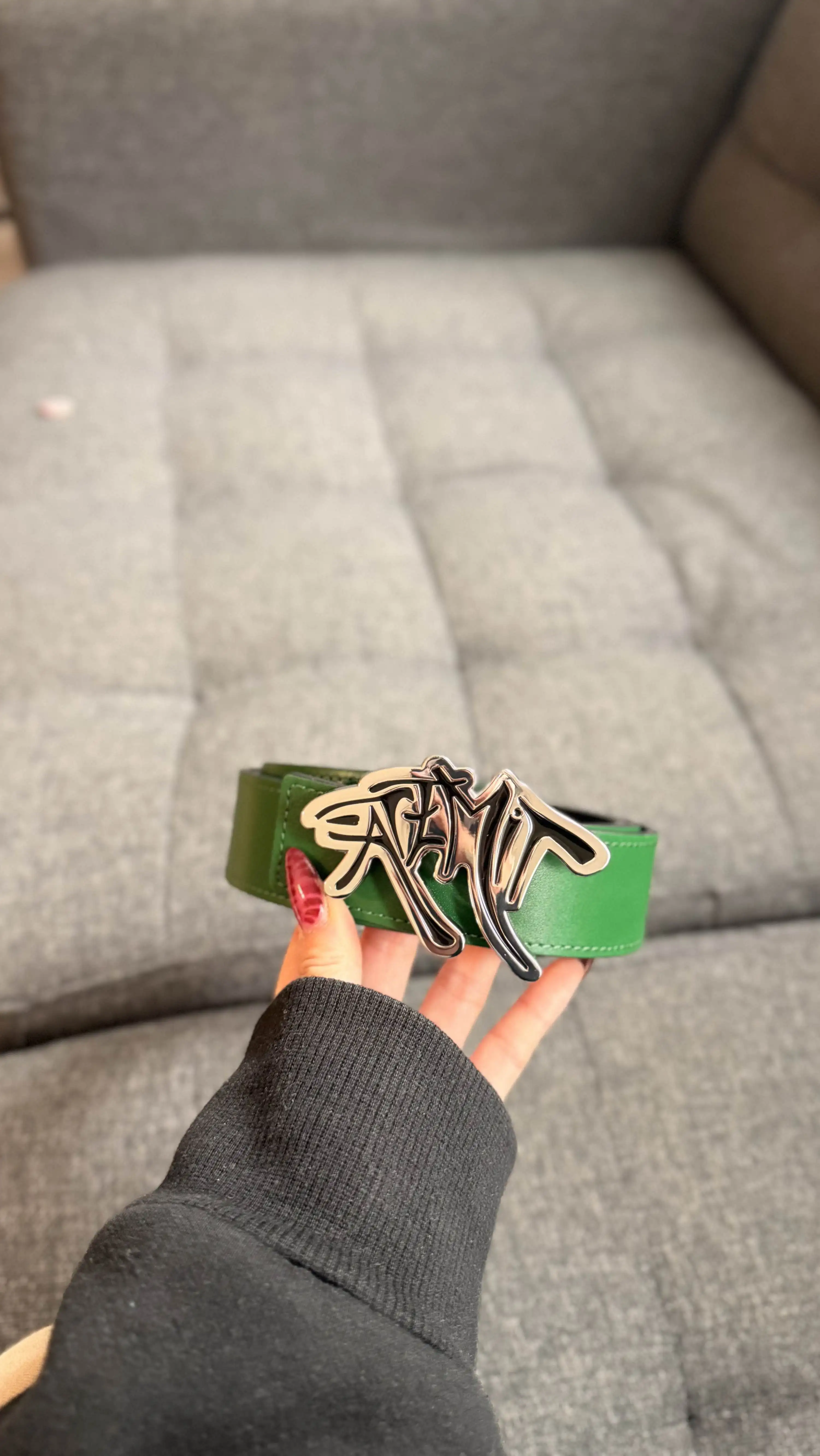 Kunden spezifische lässige Mode Damen gürtel Vintage grün echtes Leder besetzt Frauen gürtel